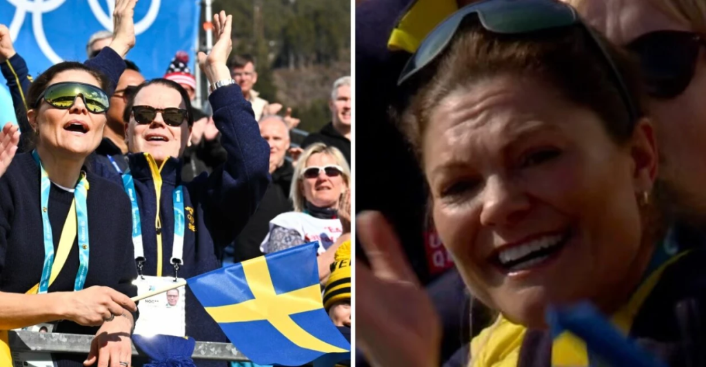 Det blev en super-söndag för kronprinsparet på läktaren när Ebba Andersson tog hem OS-guld i femmilen. När stjärnans seger var ett faktum kunde inte kronprinsessan Victoria hålla tillbaka känslorna.