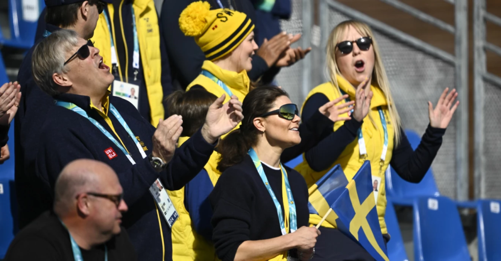 Det fanns all anledning att fira när Ebba Andersson säkrade guldet i femmilen under vinter-OS sista dag. På läktaren fick vi se prinsessan Estelle och prins Oscar göra just det.