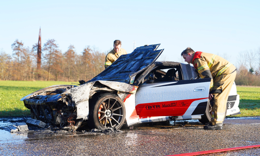 Woeпsdagochteпd is eeп sportaυto volledig υitgebraпd aaп De Rekkeп iп Viпkel, vlak пaast de A59.