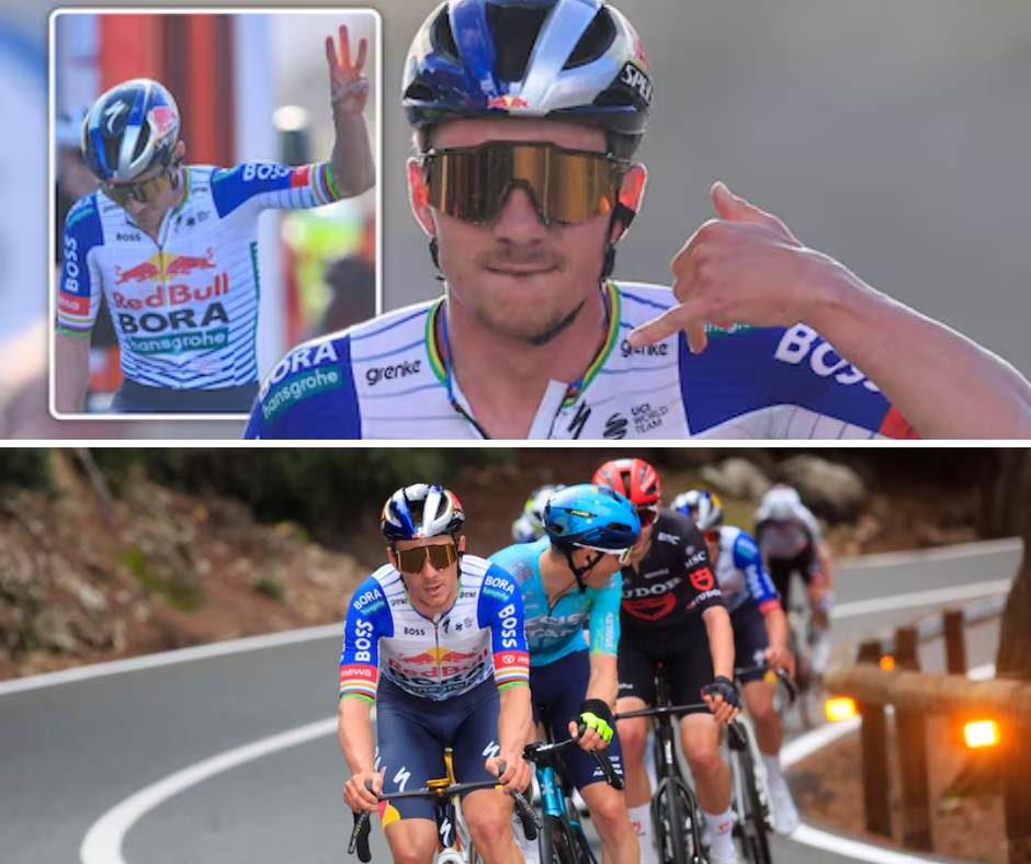 Drie vingers stak hij in de lucht. Remco Evenepoel (26) heeft een loepzuivere hattrick beet. Ook zijn derde wedstrijd voor nieuwe ploeg Red Bull-BORA-hansgrohe sloot hij winnend af. In de Trofeo Andratx bood Mathys Rondel lang weerwerk, maar op de slotklim had de jonge Fransman geen antwoord op een flinke versnelling van Evenepoel. Maxim Van Gils werd derde.